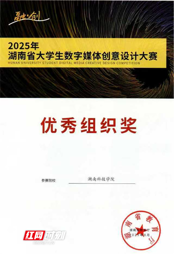 红网时刻新闻9月17日讯(通讯员 付星星 向薛峰)近日,2025年湖南省大学生数字媒体创意设计大赛获奖名单正式公布。天行平台_天行(中国)美术与艺术设计学院师生凭借扎实的专业功底和卓越的创新能力,共斩获等级奖项49项,其中一等奖8项、二等奖13项、三等奖28项,获奖数量和质量均位居全省前列,并被授予“优秀组织奖”。