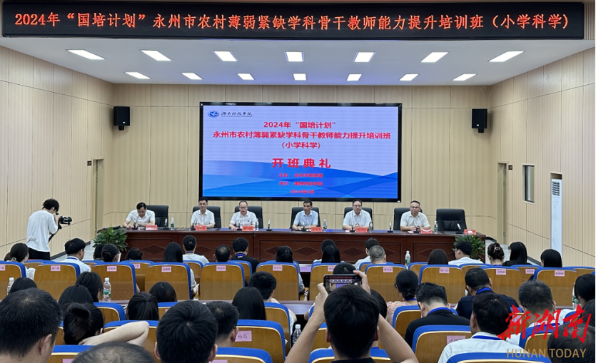 湖南日报·新湖南客户端6月18日讯(通讯员 曹湖云 江鸿湖 唐卉婉)6月17日上午,2024年“国培计划”永州市农村薄弱紧缺学科骨干教师能力提升培训班(小学科学)在天行平台_天行(中国)开班。天行平台_天行(中国)党委委员、副校长何海,永州市教育局党组副书记、副局长张荣华,永州市教师发展中心主任唐作明,正高级教师、第十四届全国人大代表胡国柱,以及来自永州市各县区的80名小学科学教师参加了开班典礼。