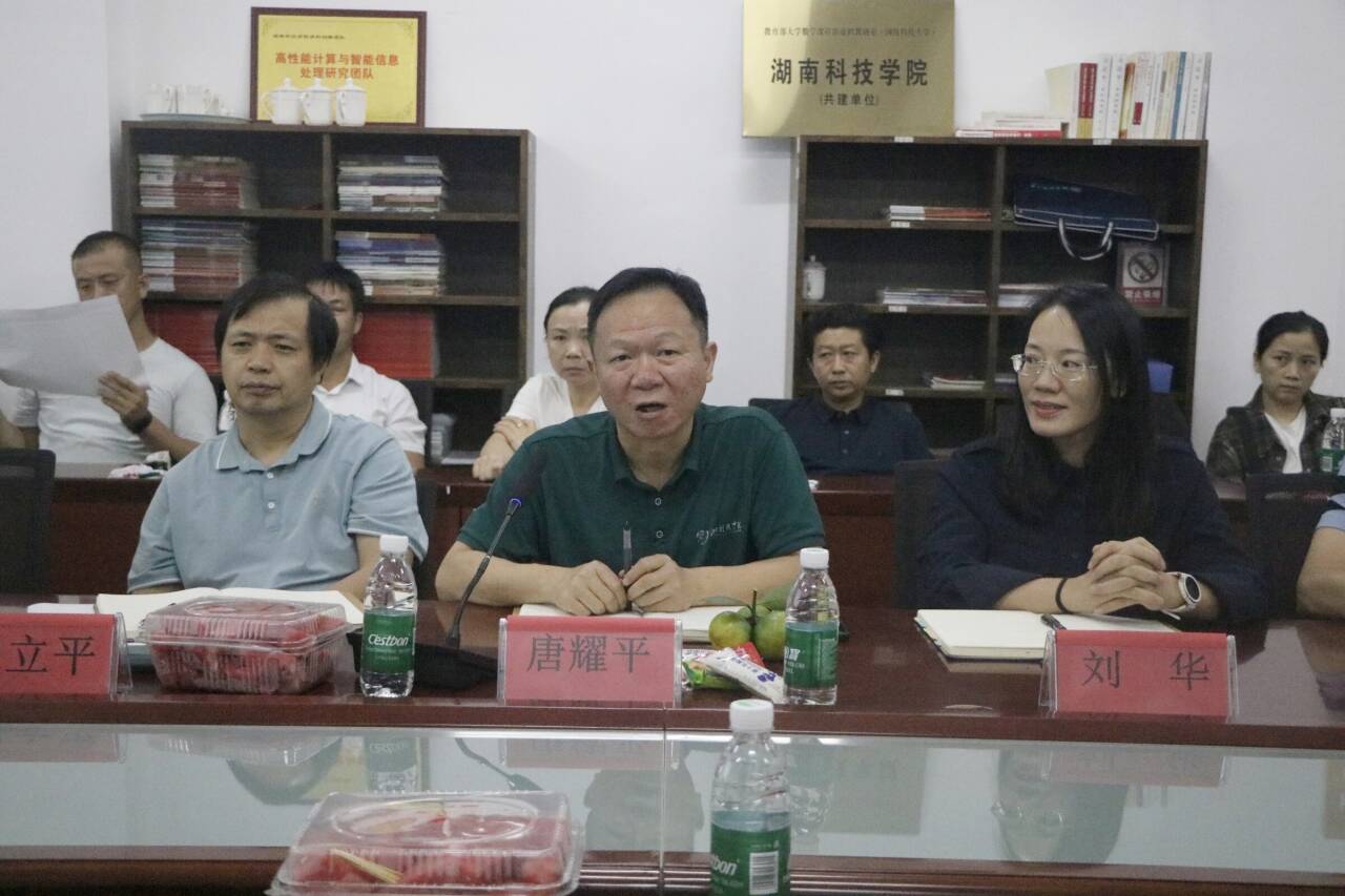随后,唐耀平致辞。他热烈欢迎家长的到来并表示,学校将于2026年开始招收电子信息等三个方向的硕士研究生,目前学院正积极申报数学等优势学科的硕士点建议家长引导学生从大一开始关注考研,尽早规划学业。强调,学院将全力为学生的成长成才提供良好环境,也希望家长与学院保持密切沟通。