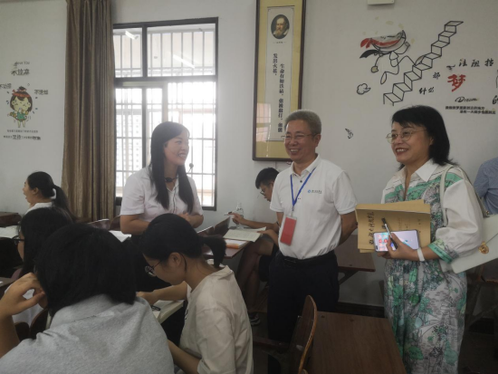 在马克思主义学院谢周艳老师教的2021级思想政治教育专业课程《思想政治教育学原理》的课堂教学中,曾宝成、李常健等一行一边认真听讲,一边做听课笔记。下课后,曾宝成从教师的教态、教学内容、教学方法和教学效果等方面与谢周艳做了深入交流。