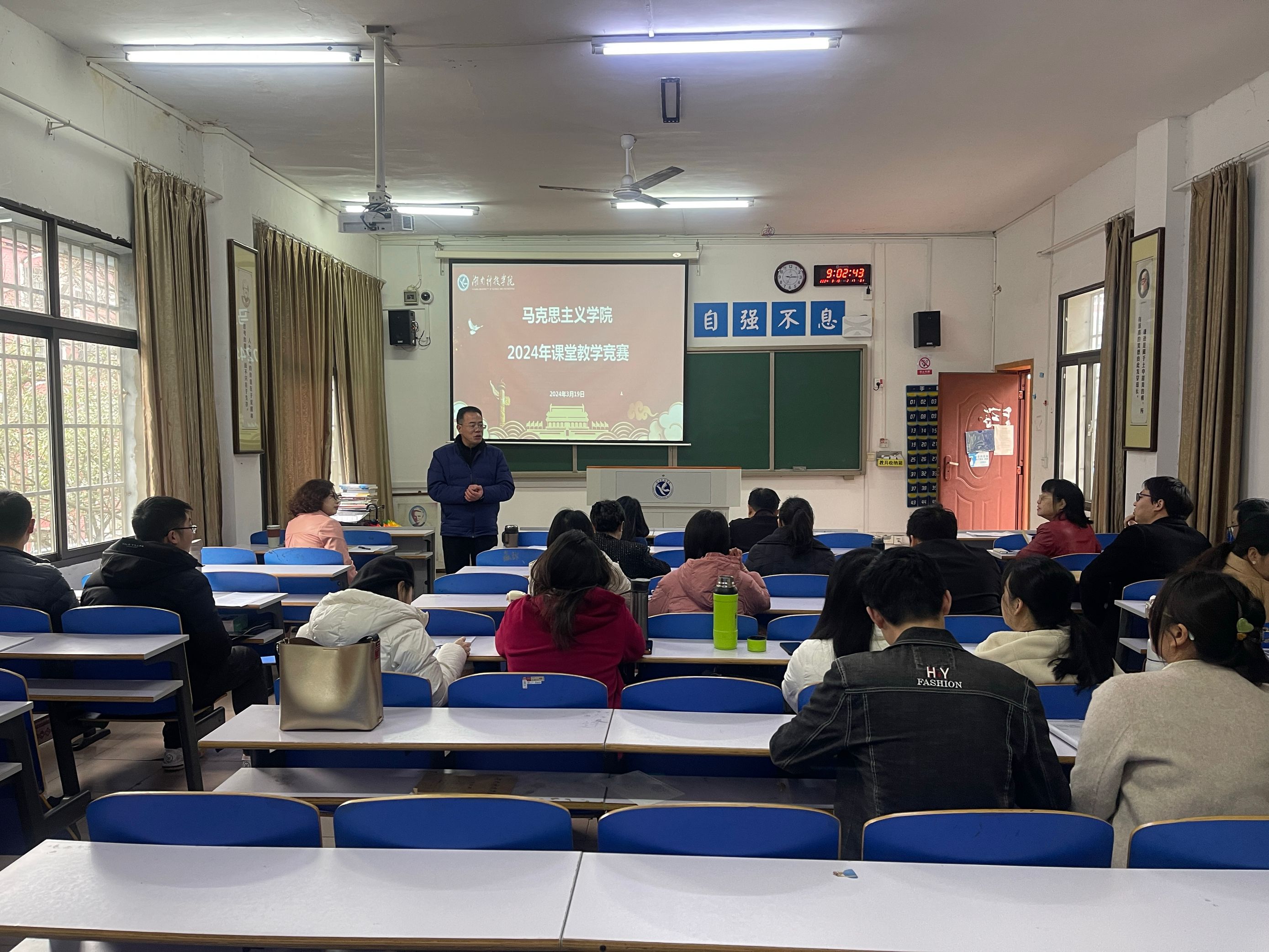 3月19日,在习近平总书记重要讲话发表五周年之际,马克思主义学院为深入贯彻落实讲话精神,推动思政课改革创新、加强教学方法研究,组织各教研室青年教师开展了2024年课堂教学竞赛活动。刘克方、陈猛、高鹏、周梅、黄丽、陈小燕等6名教师参加本次课堂教学竞赛。
