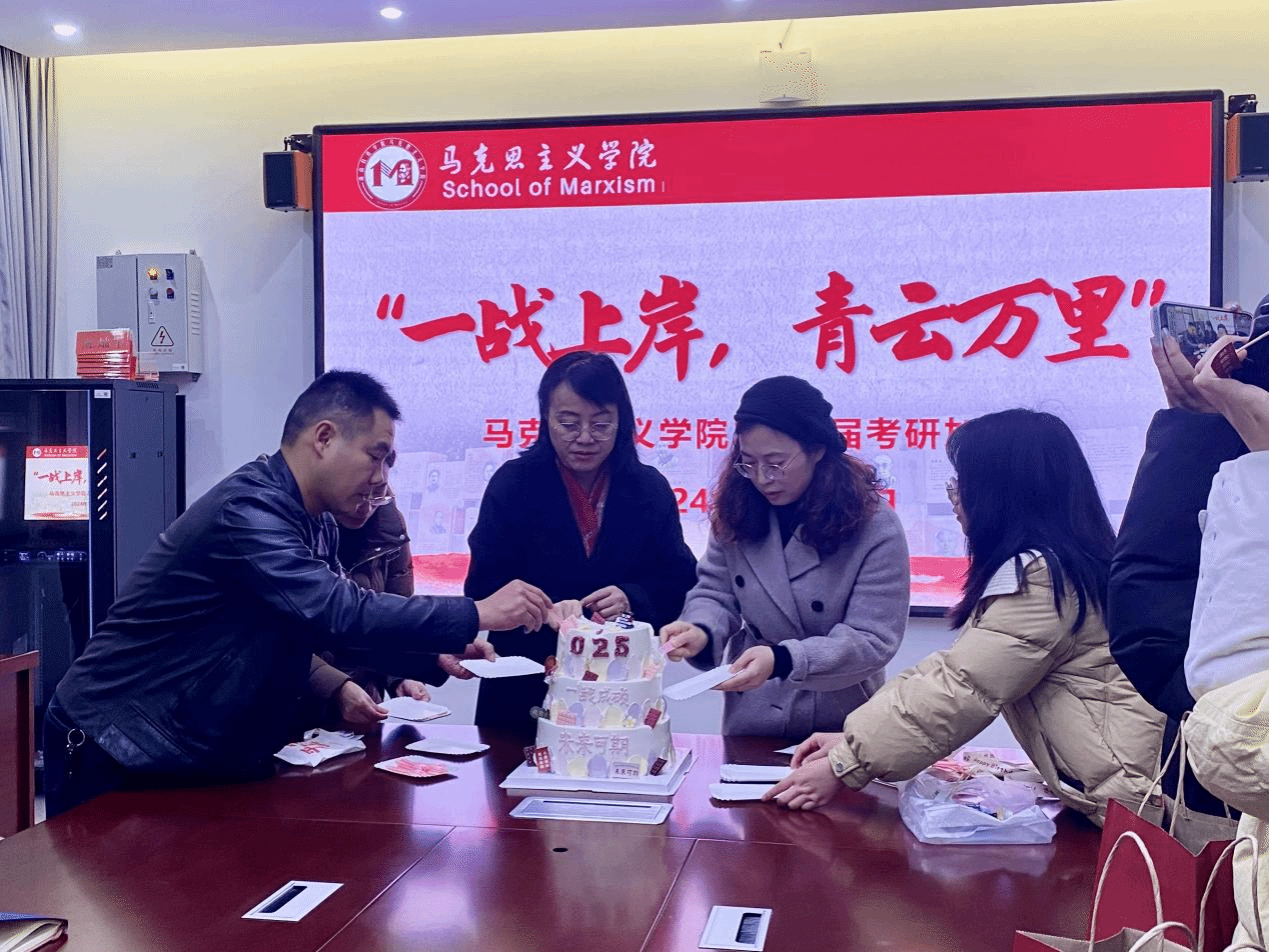最后,领导老师们分别为同学们切分蛋糕,并送上“上岸福袋”,同学们纷纷感谢各位老师给予的关心与祝福,表示一定不会辜负老师的期望,会认真学习,积极备考,以饱满的热情迎考。