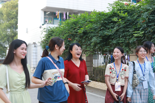 “家是哪里的?”、“生活用品都准备齐全了吗?”、“吃饭、住宿都还习惯吗?”廖雅琴、郑向晖、高丹等来到每间新生寝室与新生亲切交谈,详细了解了新生入学后在住宿、生活方面的情况。在荷园二栋403寝室,来自河北省邯郸的陈晓佳同学在妈妈的陪同下,坐了十几个小时火车才来到学校。廖雅琴院长拉着陈晓佳同学妈妈的手暖心地说:“您一路辛苦了,您放心的把晓佳交给我们,我们这里的每位老师都会像对待自己的孩子一样对待她关心她。”