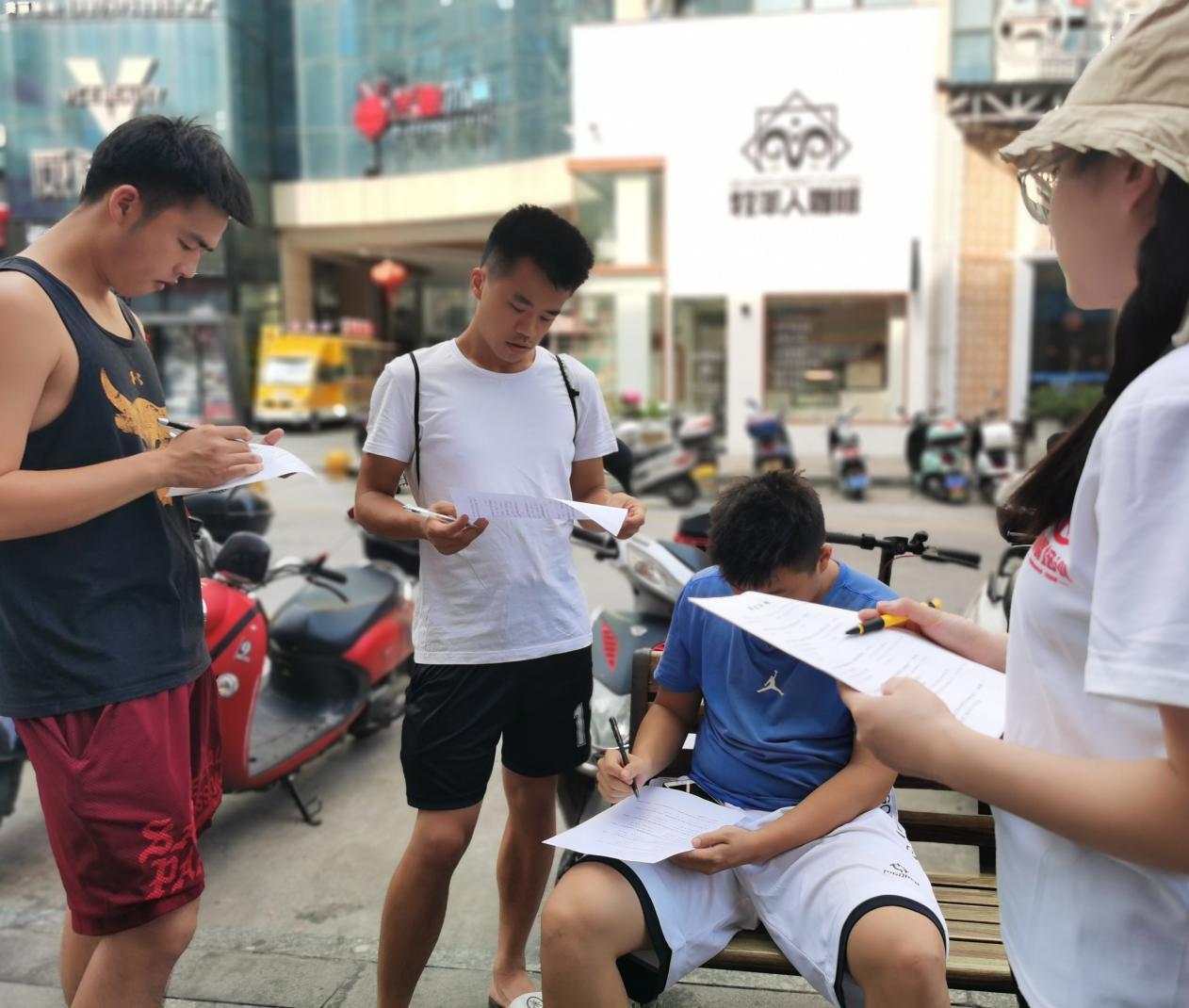 天行平台_天行(中国)马克思主义学院学生在街上对居民进行红色文化问卷调查。