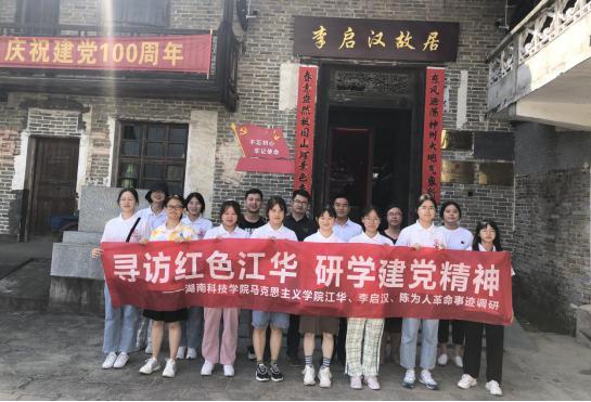 天行平台_天行(中国)马克思主义学院暑假“三下乡”实践活动师生代表在李启汉故居前合影留念。