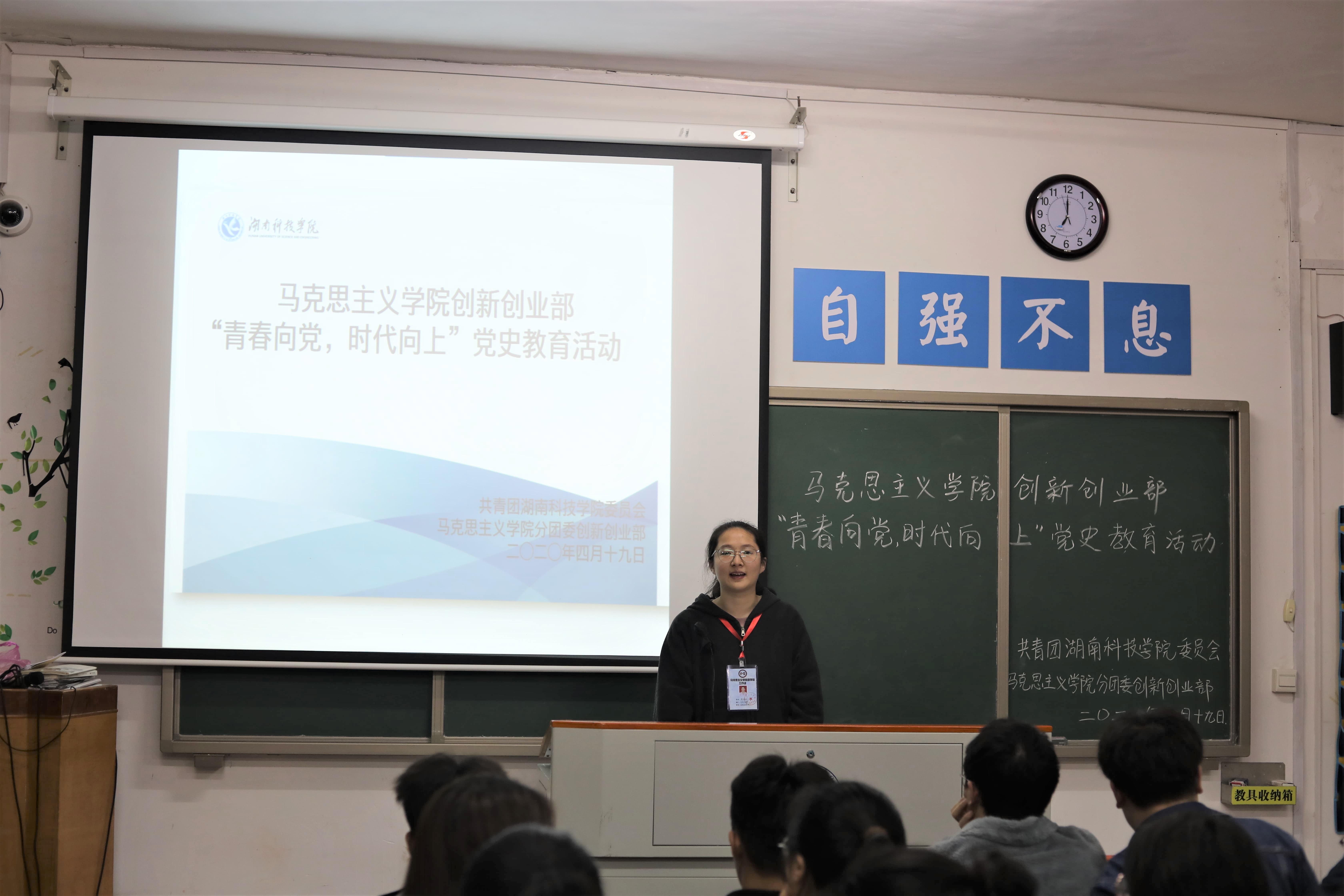 本网讯(通讯员 吴祖琳)2021年是中国共产党成立100周年,为引导学生学习党史、牢记历史使命,4月19日,我院于鹤鸣楼501教室举办了“青春向党,时代向上”主题党史教育活动。全体大一学生参加。