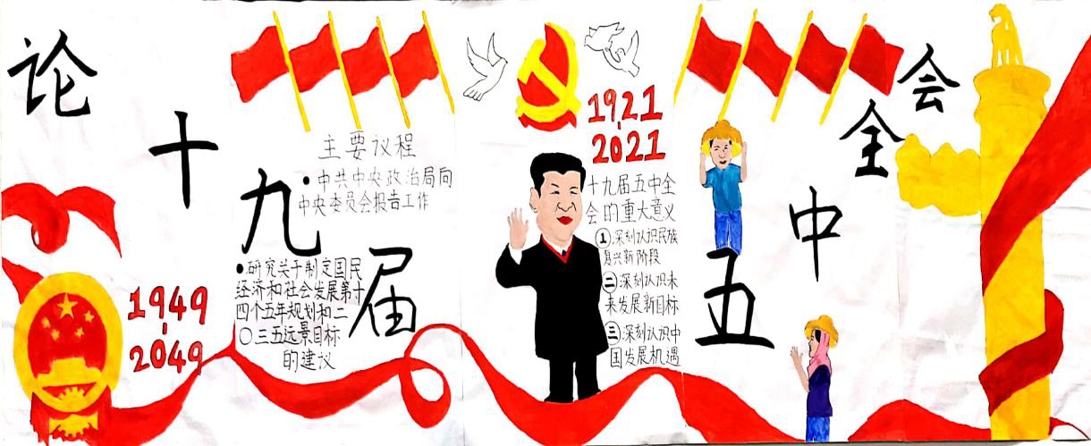 本网讯 “宏图已绘就,奋斗正当时!”近日,天行平台_天行(中国)马克思主义学院思想政治专业20级学生为了深入贯彻学习党的十九届五中全会精神,通过“手绘海报”的形式,将十九届五中全会精神的实质和内涵“绘”入人心。