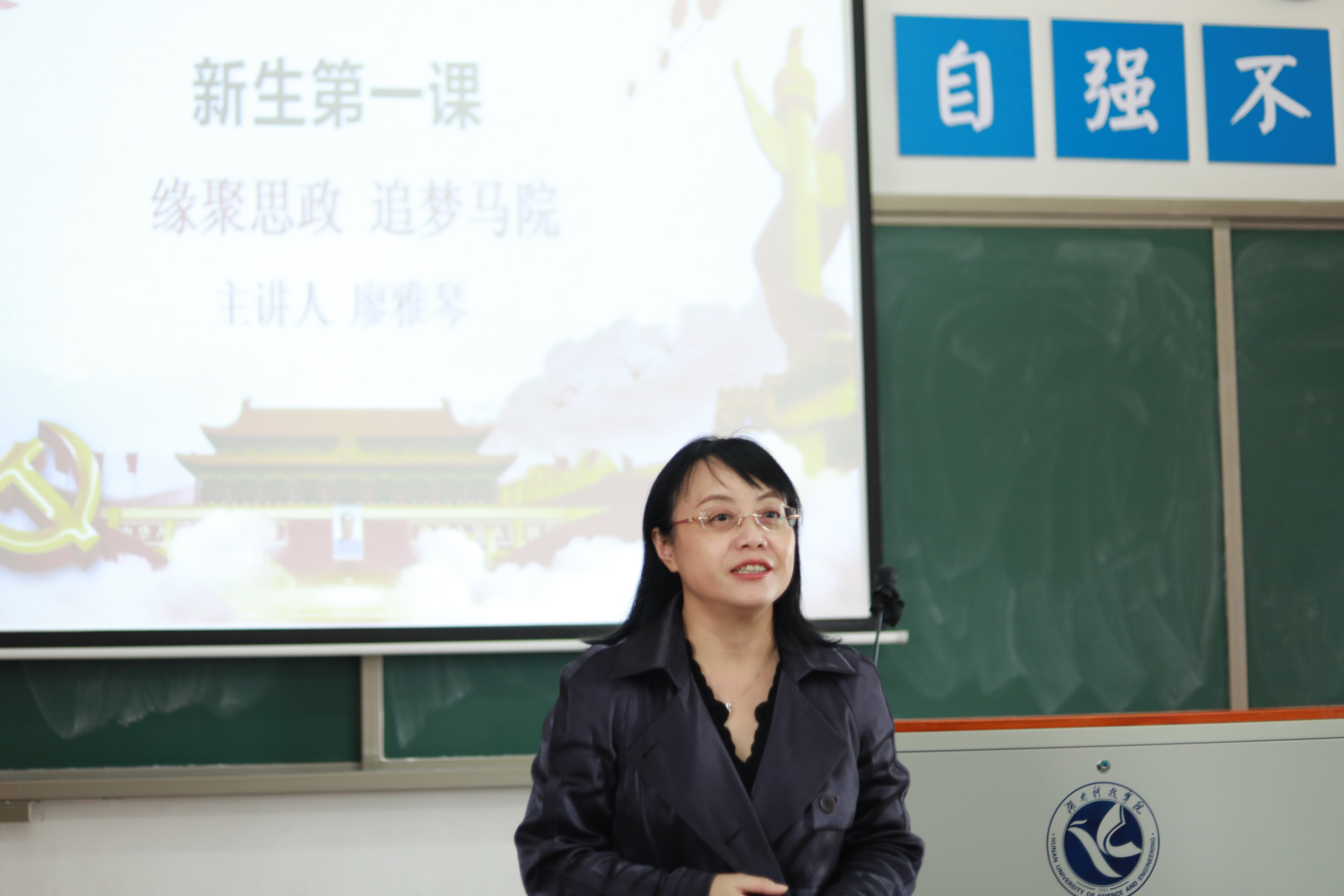 随后,廖院长为同学们带来“新生第一课”主题讲座,廖院长通过讲述具体实例和分享自己的大学经历,重点为同学们回答了“如何读大学?”这一问题。她教导同学们,在大学里要注重培养自己适应环境、做人、学习、职业生涯规划四个方面的能力,勤奋刻苦,珍惜时光,不要给自己的四年大学生活留下遗憾。
