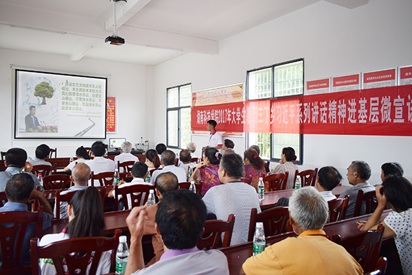 本网讯(通讯员全伟贺茶香)7月10日,马克思主义学院党总支书记唐森树带领该院大学生暑期“三下乡”社会实践团队前往祁阳县白水镇开展习总书记系列讲话精神进基层微宣讲活动。