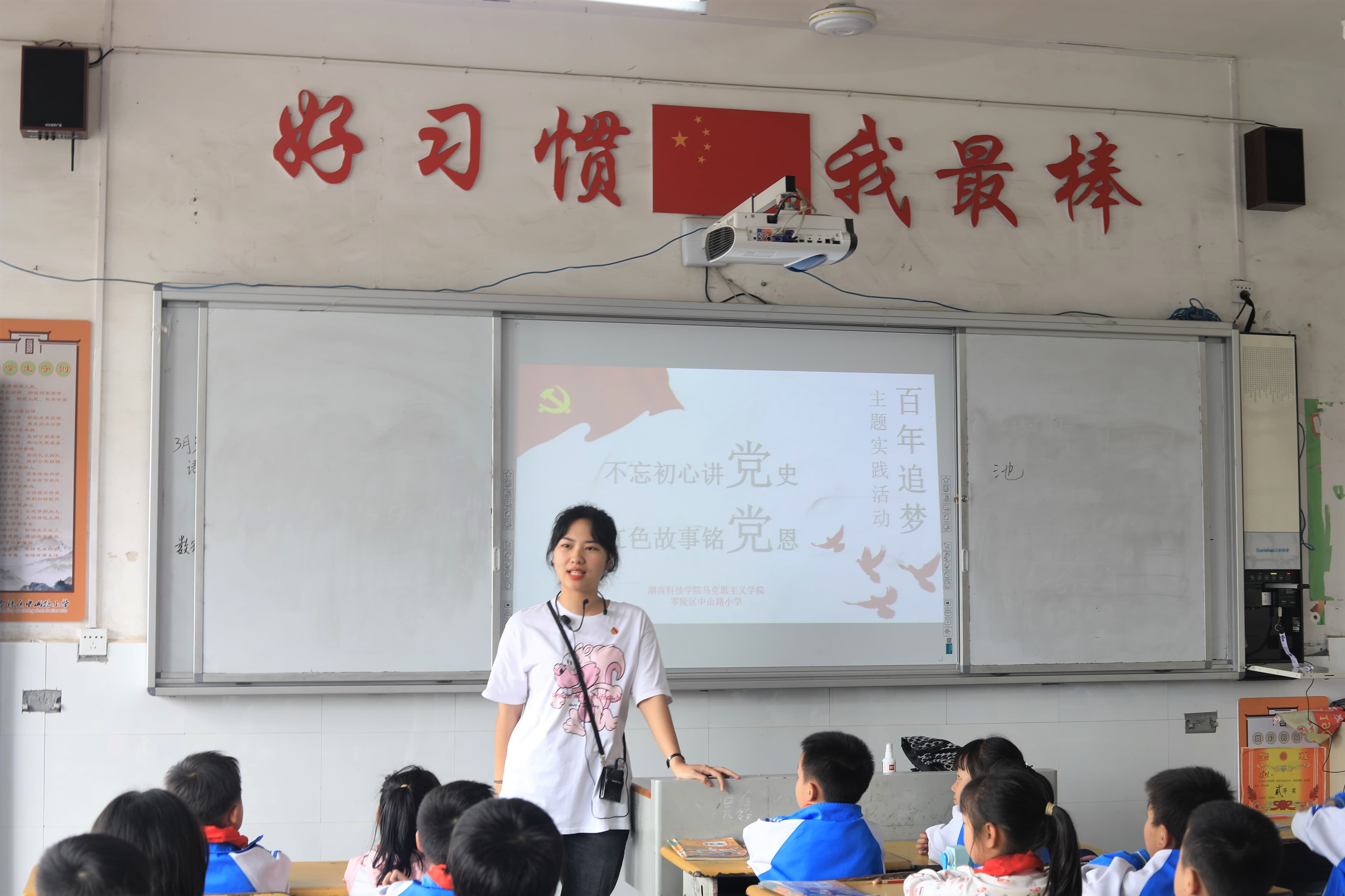 本网讯(通讯员 谢松林)峥嵘百年,共庆华诞。2021年是中国共产党成立100周年,也是“两个一百年”奋斗目标的重要历史交汇点。在中国共产党百年华诞即将来临之际,天行平台_天行(中国)马克思主义学院思政专业学生发挥专业优势,积极承担党史知识宣讲责任,与永州市零陵区中山路小学建立长期合作关系,组织学生前往学校进行义教活动,将党史教育带入小学课堂,引导学生知党史,感党恩。