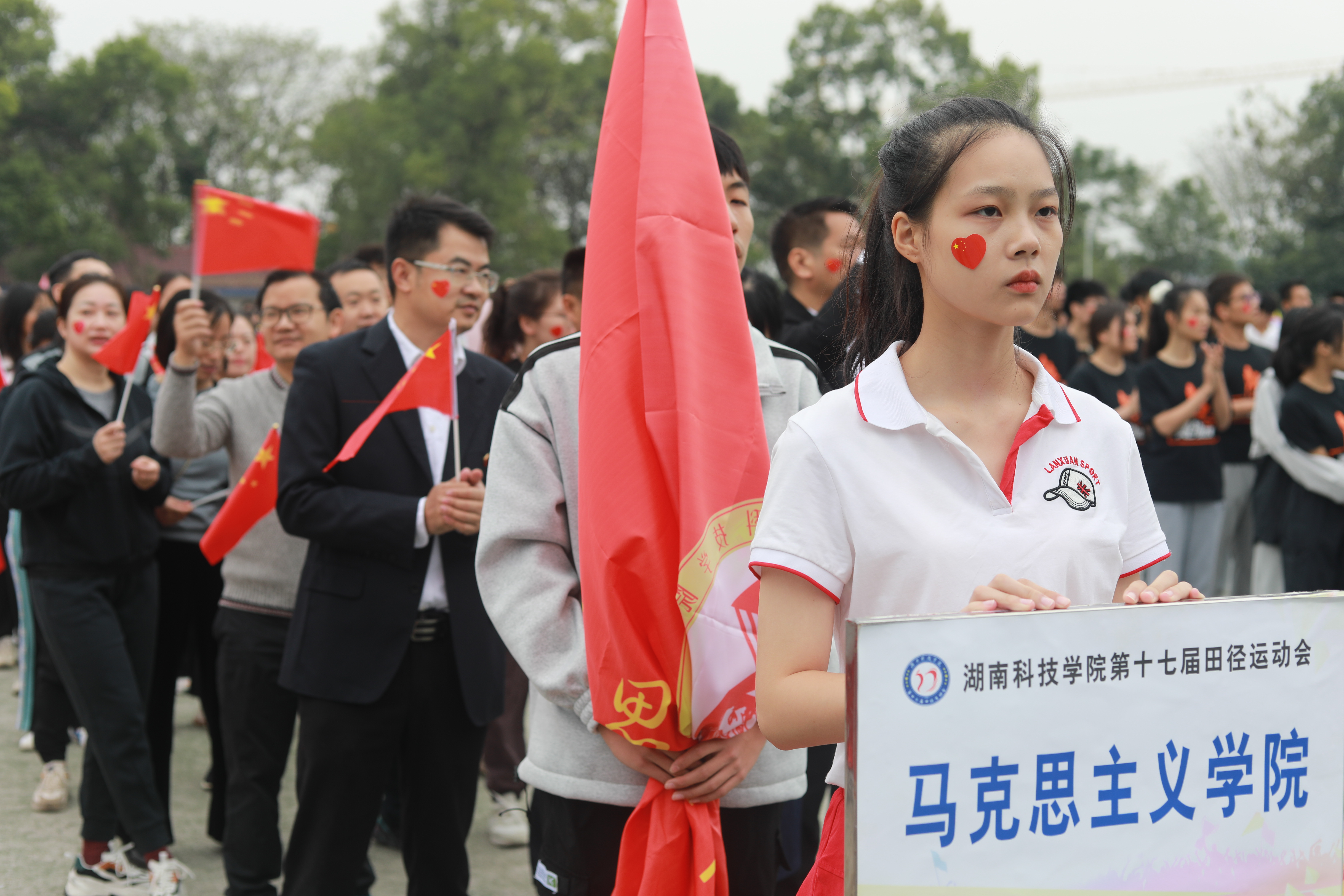 随着音乐声响起,各个学院队伍依次入场,我院方阵服装统一,手持小红旗,意气风发,激动地喊出“百炼成钢,青春激扬,筑梦马院,共创辉煌”这一嘹亮口号,迈着整齐的步伐通过主席台,展现出朝气与活力。