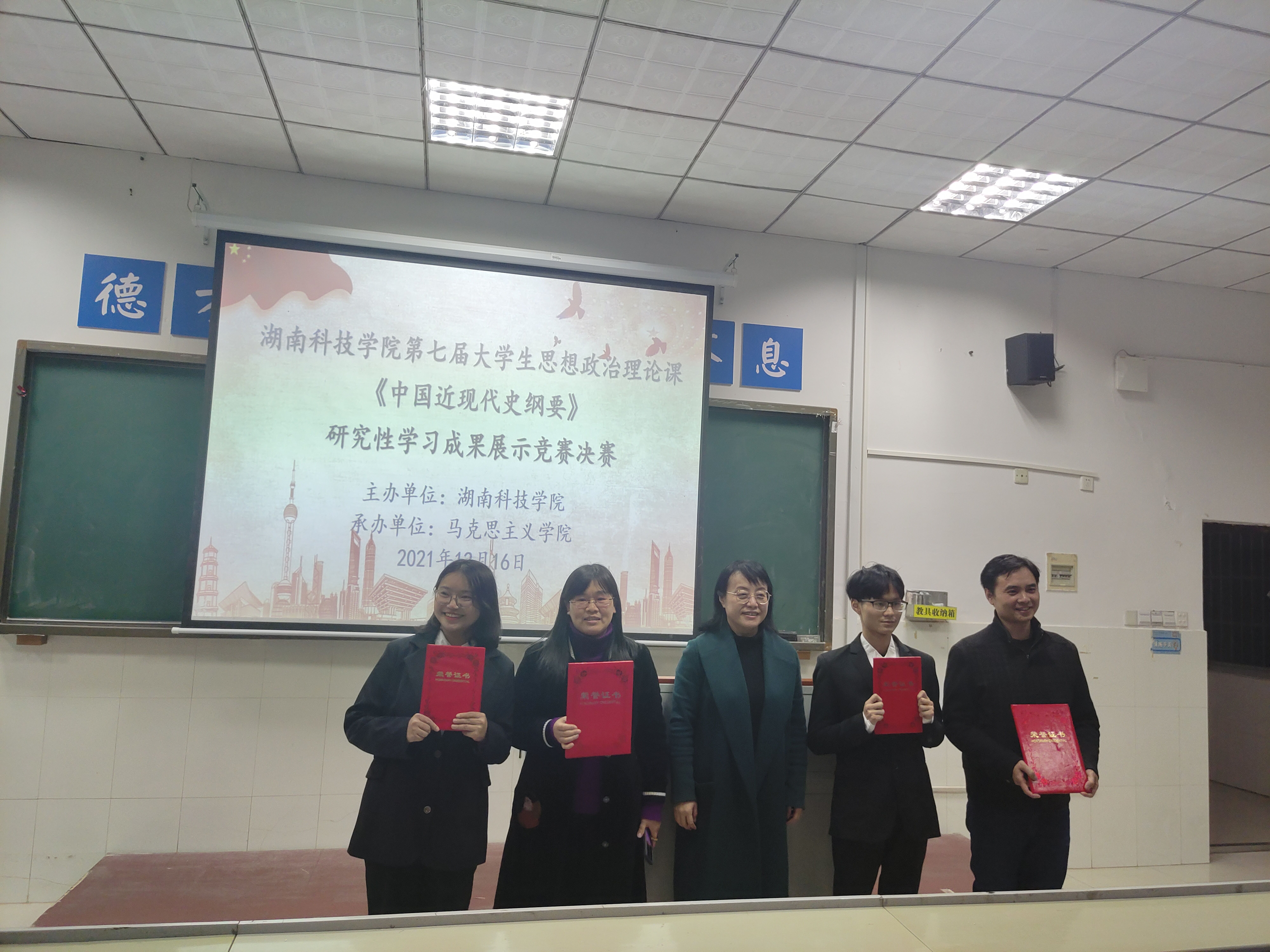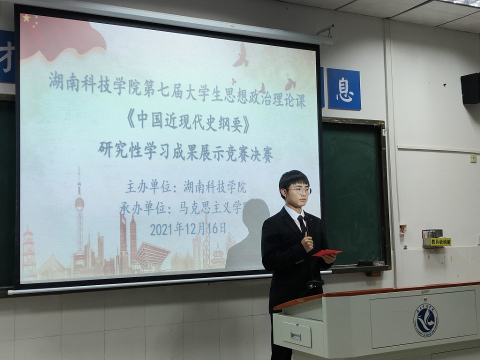 此门课程的研究性学习成果展示竞赛,进一步加强了同学们对习近平总书记“七一”重要讲话精神以及党的十九届六中全会通过的《中共中央关于党的百年奋斗重大成就和历史经验的决议》文件精神的理解,激发了同学们理论学习的主动性和积极性,锤炼了同学们团结协作、探索创新的能力。