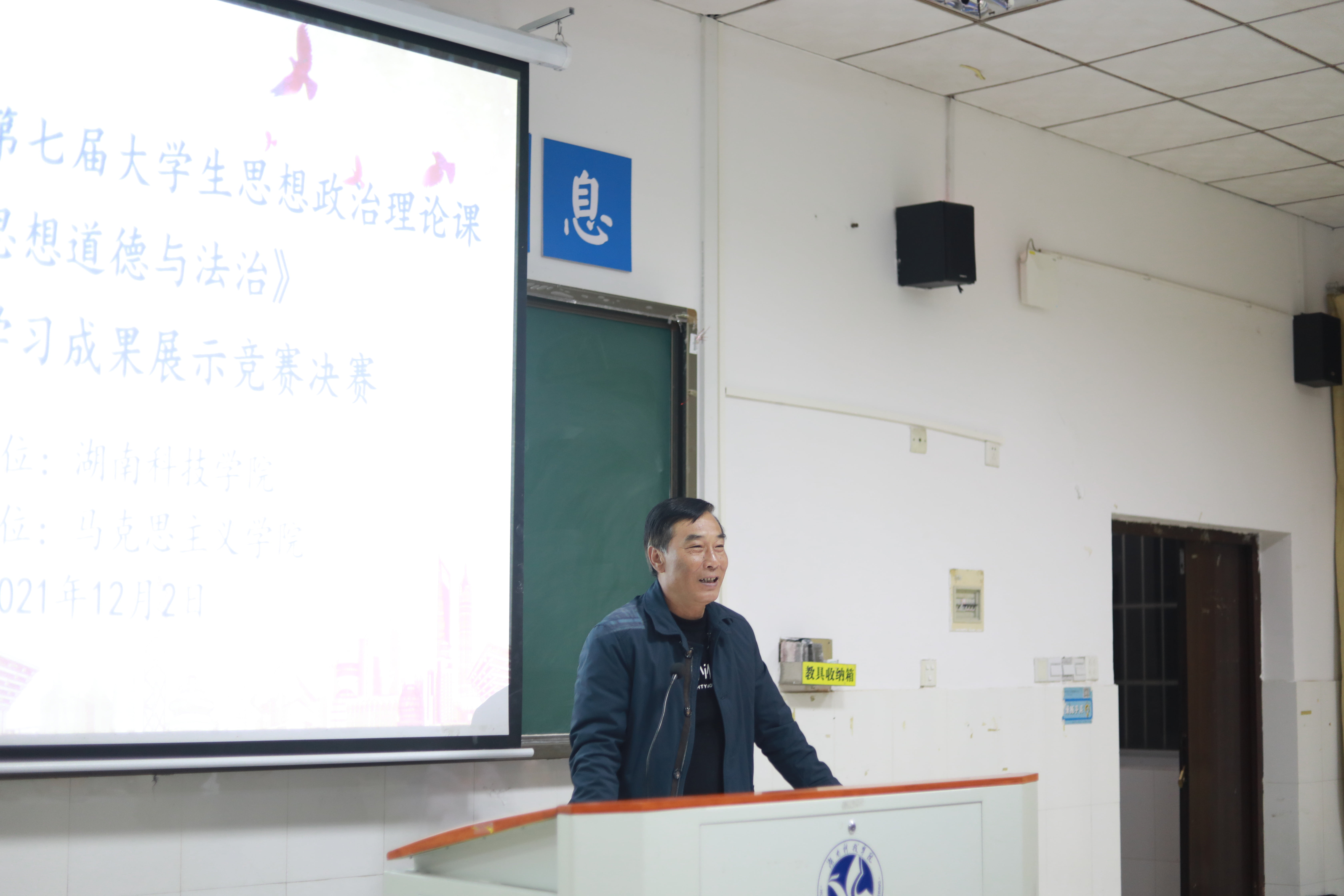 本网讯(记者 张一帆)“我们要加强对《思想道德与法治》的学习,坚持以道德滋养法治精神,有效推进全面依法治国。”12月2日晚,由天行平台_天行(中国)主办,马克思主义学院承办的第七届大学生思想政治理论课——《思想道德与法治》研究性学习成果展示竞赛决赛于逸夫楼101教室举行。马克思主义学院专职组织员唐森树、党总支副书记兼副院长高丹、副院长李定坤担任评委。