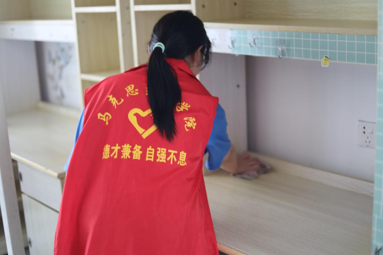 活动过程中,志愿者们带好各自的清扫工具,对宿舍的床铺、桌椅、地面以及卫生间都进行了全面细致地清扫,不留死角,不留盲区。同时,将宿舍中留下的闲置物品进行了分类包装整理,真正做到物尽其用,避免资源浪费。