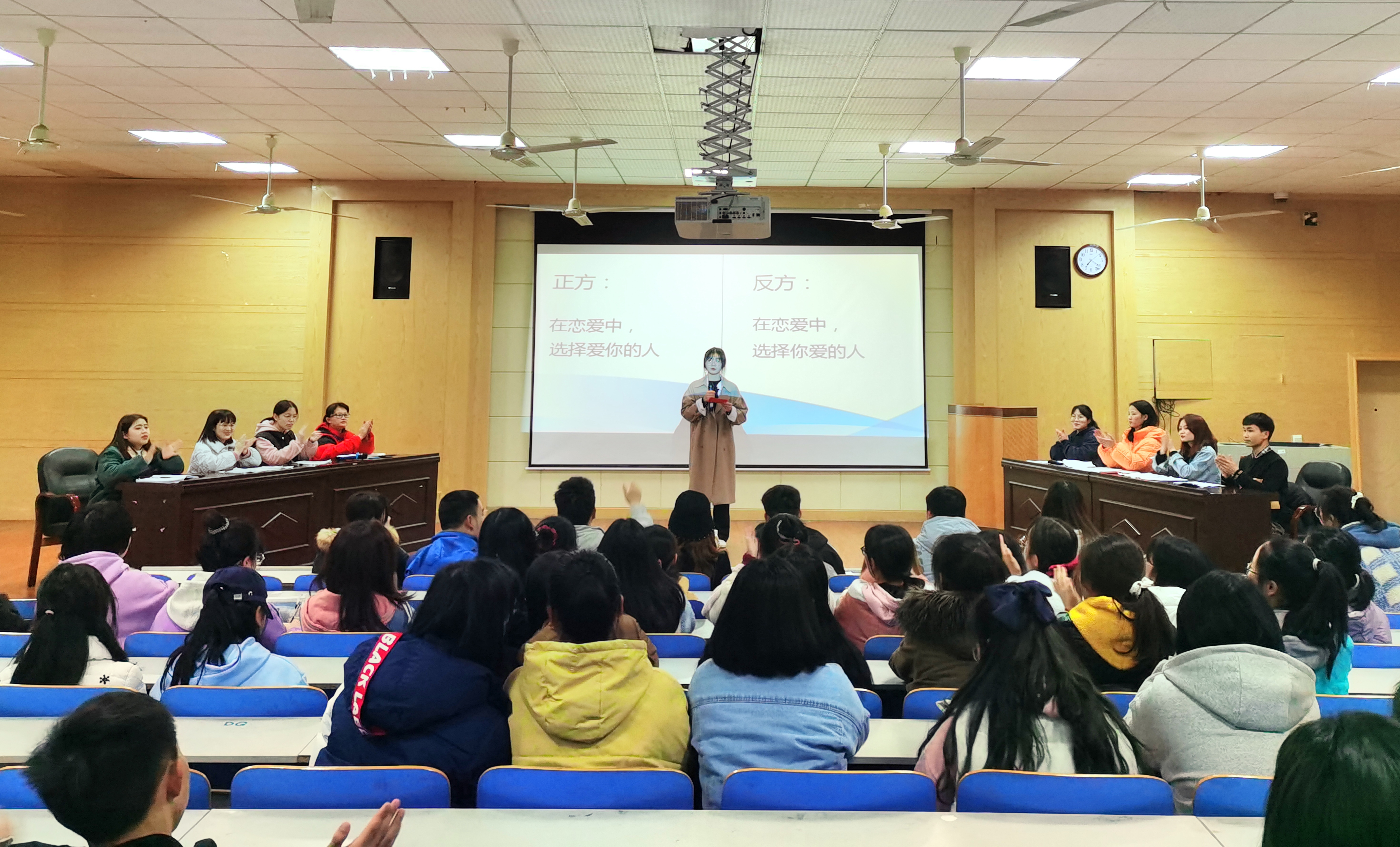 最后,经过评审,持“在恋爱中,选择我爱的人”观点的反方辩手摘得桂冠,黄晓慧同学获得“最佳辩手”称号,本次辩论赛圆满落下帷幕。