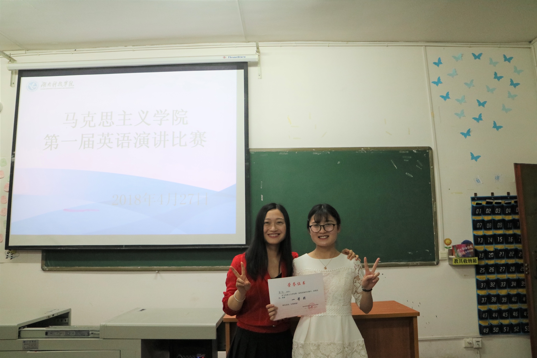 本网讯(通讯员 张亚娟)为迎接第24届全省大学生英语演讲比赛,提高我院学生的英语水平及增强英语学习能力。马克思主义学院于4月27日晚在鹤鸣楼501教室举办英语演讲比赛,外国语学院胡维老师、杨梅老师、唐媛老师担任评委,16级、17级学生参与。