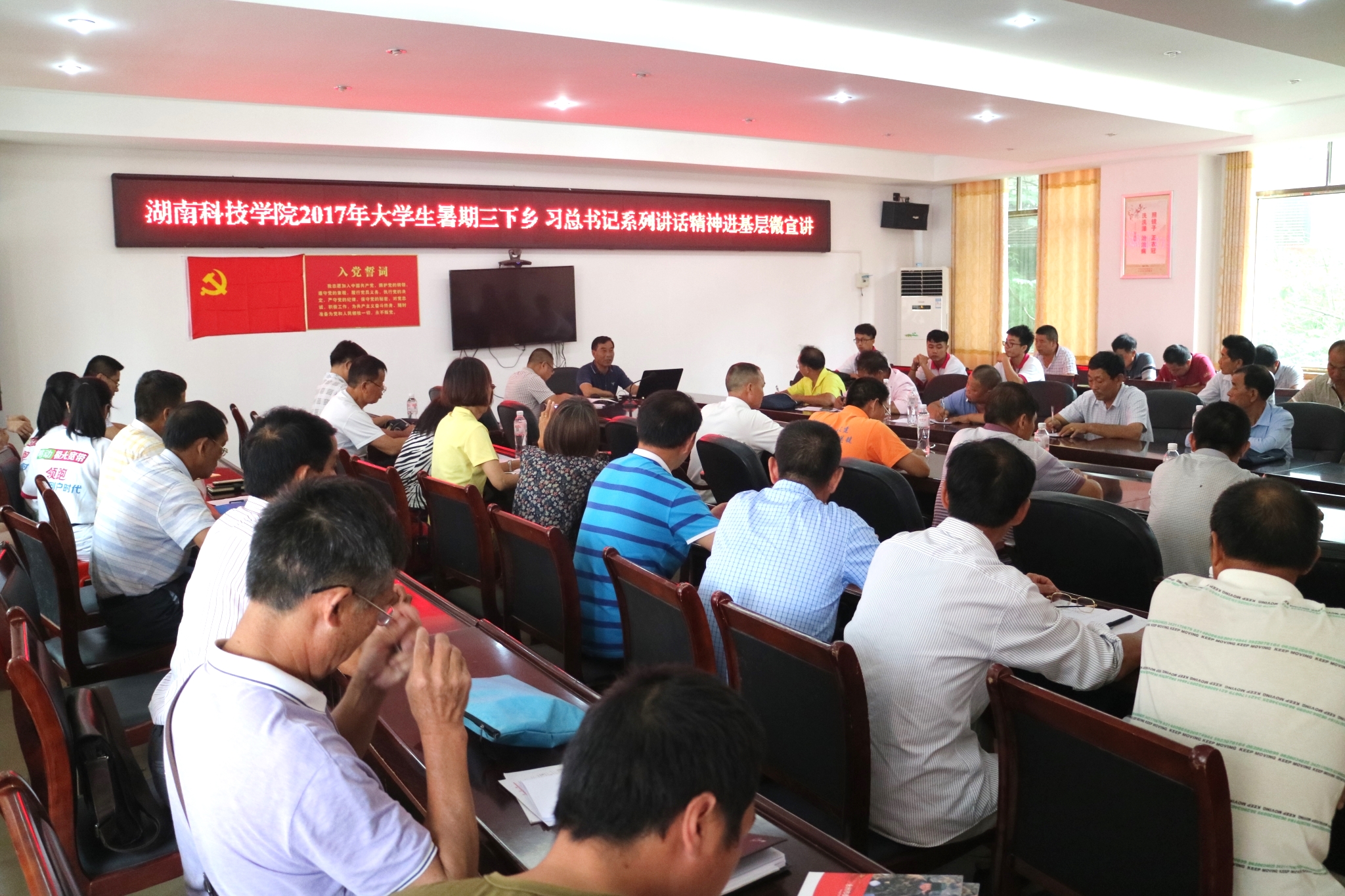 本网讯(记者 贺茶湘)7月11日,马克思主义学院大学生暑期“三下乡” 社会实践团队一行14人在党总支书记唐森树的带领下在祁阳县白水镇开展习总书记系列讲话精神进基层微宣讲,继续进行三下乡第二天的活动。