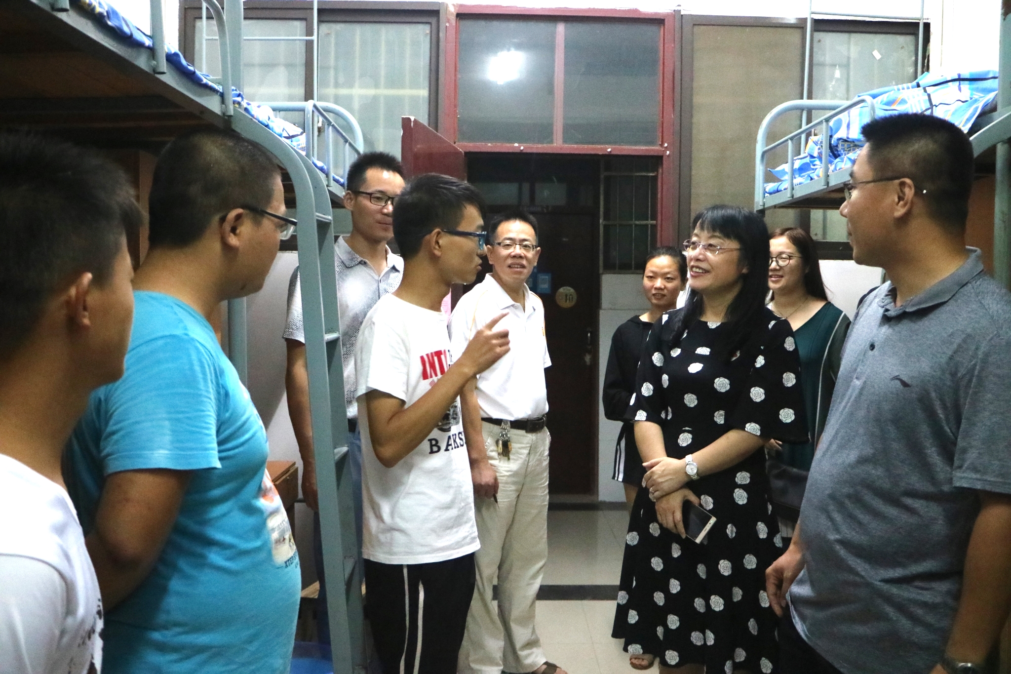 “刚来校还适应吗?”“校园卡都办好了吗?”“生活上有没有什么困难?”……廖雅琴一行人每进一间宿舍,都仔细询问新生的各项情况,认真查看宿舍里的各项设施是否完备,亲切地和新生们交谈。廖雅琴嘱咐新生们在生活上相互关爱,在学习上互相帮助,养成良好的生活学习习惯,珍惜大学时光,做到生活愉快、健康成长。同学们都纷纷表示一定会以饱满积极的态度迎接自己的大学生活,奋发图强,认真学好专业知识,增长才干,不辜负学校的期望。