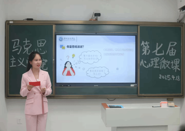 本网讯(记者 易媛媛)为提升学生心理健康意识、营造积极向上的校园氛围,4月18日晚,马克思主义学院在鹤鸣楼106微课教室举办“心向暖阳,逐光成长”第七届心理健康微课院赛。活动由思政2401班易媛媛主持,辅导员吴志伟,学长许圣翰、学姐唐汇担任评委。