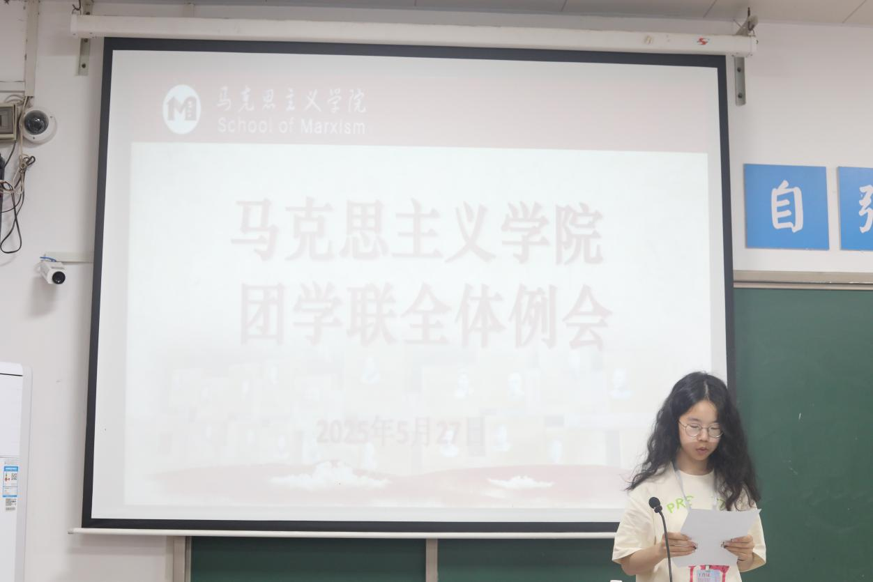 本网讯(记者 李嘉瑶)5月27日,马克思主义学院召开第十一届团学联全体例会,学院党总支副书记高丹、学工办副主任曹惠如、辅导员吴志伟、团学联全体成员参加会议。会议总结了本学期的工作成绩和收获,明确了未来工作方向和重点。