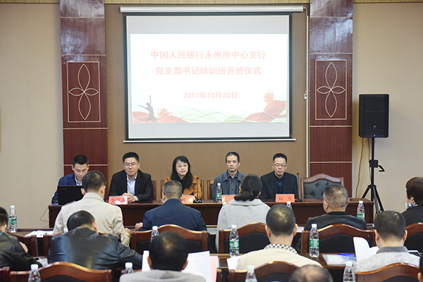 本网讯 (通讯员 李艳)为深入贯彻落实全面从严治党要求,进一步加强基层党组织建设,10月20日,正值党的十九大召开之际,我校为中国人民银行永州市中心支行举办了一期党支部书记专题培训班。该行机关党委书记、党委委员、工会主任雷树清,马克思主义学院院长廖雅琴等出席。