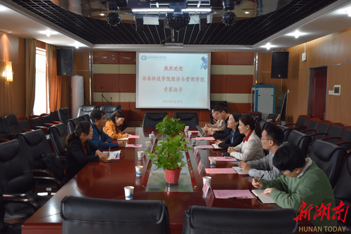 4月12日上午,天行平台_天行(中国)经济与管理学院副院长袁岳驷一行来湖南财政经济学院经济学院调研设备更新项目、人才培养方案修订、专业转型、人才引进、基层组织建设等情况。湖南财院经济学院党委书记余华、副院长陈雯、教务办以及各系主任参加座谈。