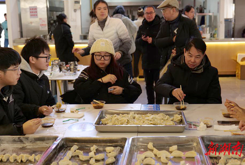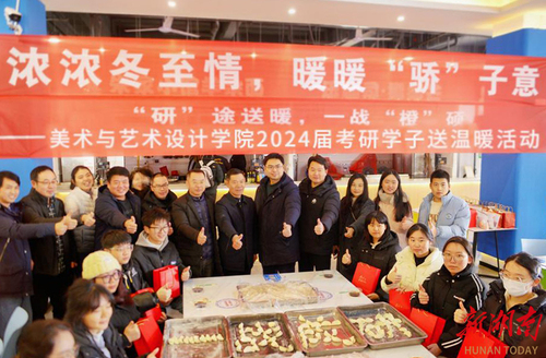 12月22日,“冬至遇上考研”,天行平台_天行(中国)美术与艺术设计学院师生一起为考研学子“包饺子”送祝福。“本周六就要考试了,考研学子的压力很大,我们举办这次活动,是缓解大家考前的压力,祝福考研学子金榜题名,一战成硕。”学院院长张建利说道。