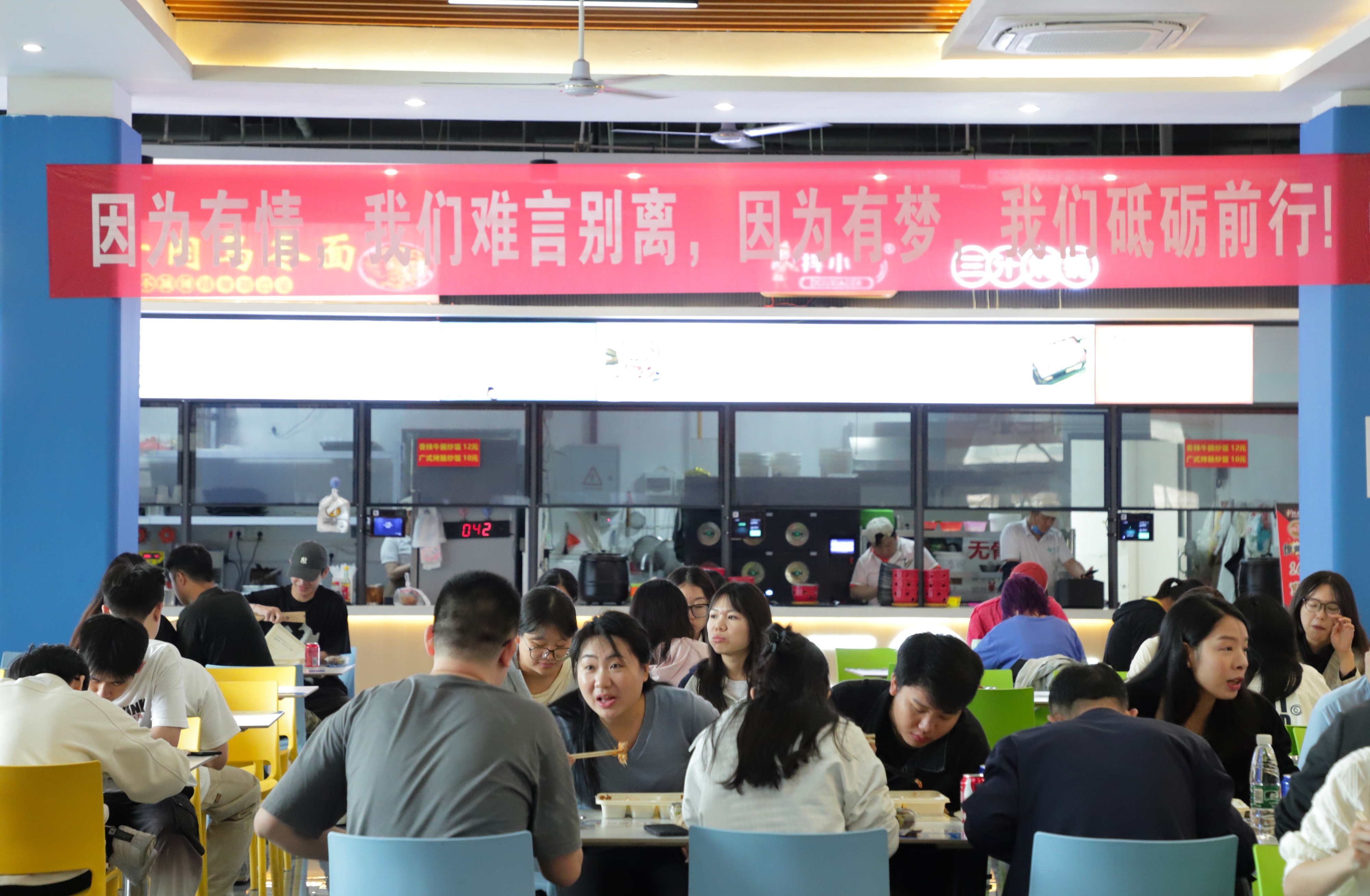 该校在各大食堂内营造了温馨的毕业氛围,鲜花、气球、印有校徽的饮品、提前准备的“前程似锦”“展翅高飞”两种定制套餐,每一个小细节都凝聚着学校对毕业生的用心和祝福。毕业生们在签名墙上纷纷留名并合影纪念,在餐桌上与好友共庆毕业快乐。来自传媒学院编导2001班的毕业生侯雪艳说“非常感谢学校推出的暖心毕业餐,让我们在离别时牢记母校的味道。”