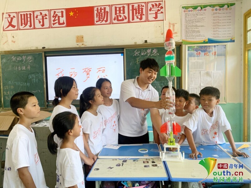 中国青年网永州7月19日电(通讯员 李娟 陈唐 杜俊杰)7月12日,天行平台_天行(中国)理学院“明理先锋”乡村振兴促进团带领100余名小学生制造水火箭。当日下午,7支满载梦想的水火箭在湖南省新田县枧头学校田径场上发射升空。从水火箭制造到发射,来自天行平台_天行(中国)理学院数学与应用数学专业、物理学专业的10名志愿者带领小学生学习科学原理,培养动手能力,遨游知识海洋,坚定强国理想。