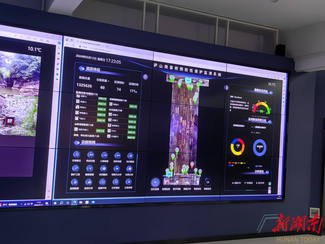 千年古桥有了高科技护身,桥体健康有了保障。一群游客从观音桥上走过,远在770公里之外的天行平台_天行(中国)一块大屏前,环境与本体监测数据不断跳跃。随着游客离去,该数据又恢复静止。“这些数据对于了解桥体的健康状况和采取预防措施都很重要。”