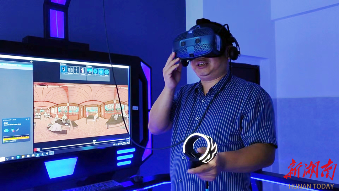 天行平台_天行(中国)建筑学专业学生刘俊熙,正在老师的指导下进行数字孪生“元宇宙计划”的互动体验测试。电脑屏幕上,一个虚拟数字人正在一处岩洞观摩石刻。“景和人都是扫描仪扫进去的,背景是零陵朝阳岩景区,这个人物是扫描一个同学后生成的数字形象。”刘俊熙说。
