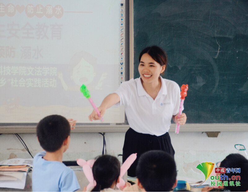 图为实践队员给同学们分发玩具。中国青年网通讯员 丁曼曼 摄