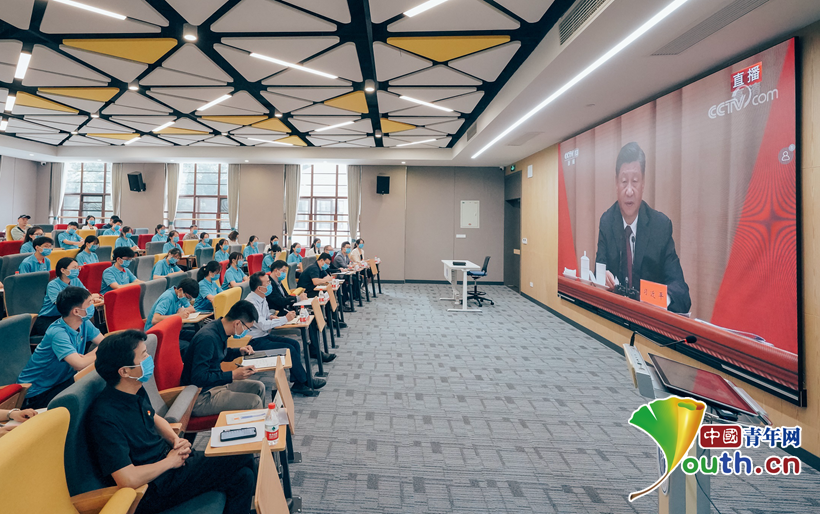 重庆交通大学师生观看庆祝中国共产主义青年团成立100周年大会直播并学习总书记的重要讲话。