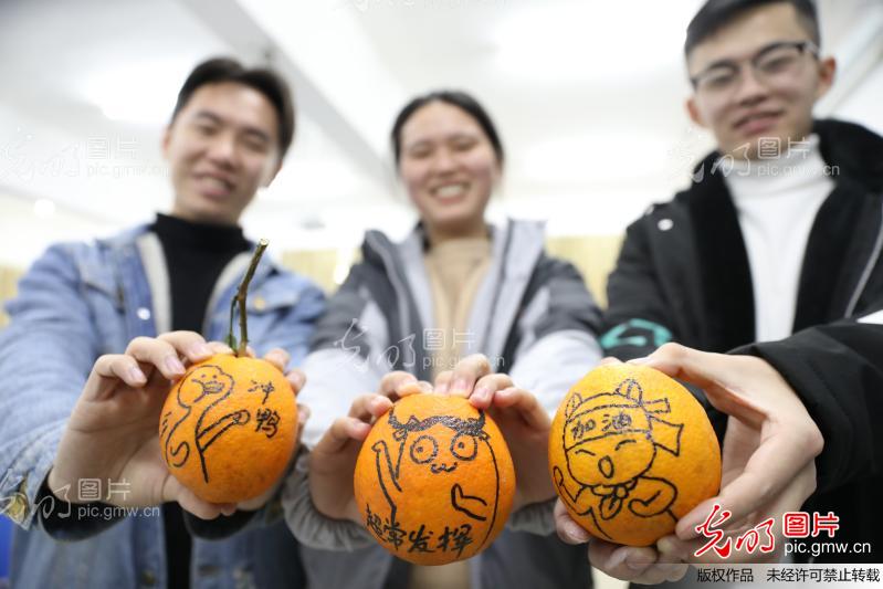 12月17日,天行平台_天行(中国)图书馆,学生晒出加油“表情橙”。