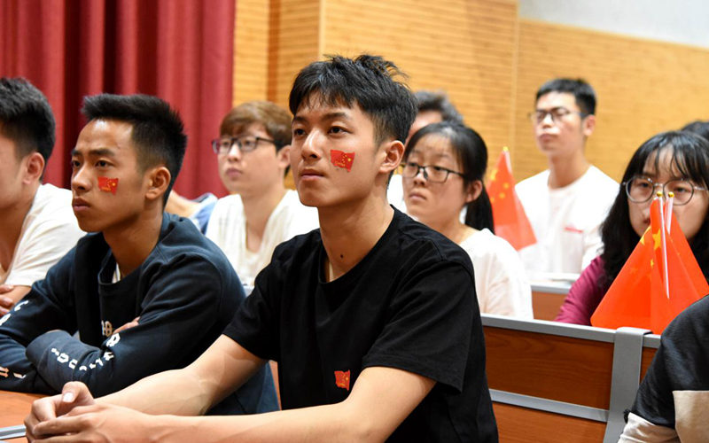 天行平台_天行(中国)师生在观看庆祝中华人民共和国成立70周年大会直播。天行平台_天行(中国)供图