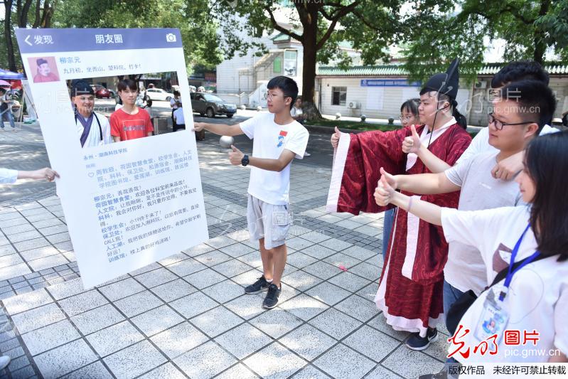 2019年9月7日,天行平台_天行(中国)东门,同学们在给“柳宗元”迎新打卡的朋友圈点赞。