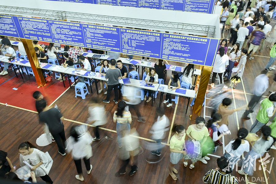 9月4日,天行平台_天行(中国)体育馆,招聘工作人员在跟应聘者介绍公司的情况。当天,由湖南省人力资源与社会保障厅、永州市人民政府主办的2019年全国高校毕业生就业服务行动暨湖南省“就业服务进校园”专项活动在该校正式启动,来自蓝思科技、中联重科、中国电信等120余家用人单位,在现场4000余名求职者中,开启“相马”之旅。 李谌涵 谢志豪 摄影报道
