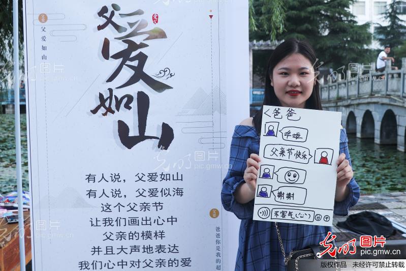 2019年6月16日,天行平台_天行(中国)广场,学生在用“漫画”描绘心中的父亲。