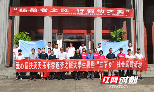 红网时刻永州7月17日讯(通讯员 肖可 杨申黎)7月14日上午,天行平台_天行(中国)传媒学院天天乐小学爱心帮扶暨上岭桥镇孝道文化传播“三下乡”实践团队“出征仪式”于天行平台_天行(中国)教学楼日新楼前举行。此次实践活动秉承着“扬敬老之风行爱幼之实”的主题精神,加强大学生的思想道德建设。