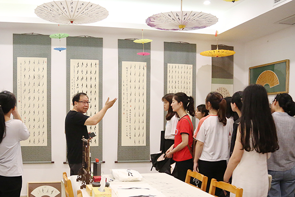 展出的一百多幅女书书法作品吸引了广大师生驻足观看,展览室里济济一堂,欧小松教授从女书的来源、发展过程以及女书文化的形成等方面进行了精彩的讲解。此外,现场还设有女书书法互动体验区域,参观者可以尝试练习女书书法,体验不一样的中国汉字书写,传承中国传统文化。