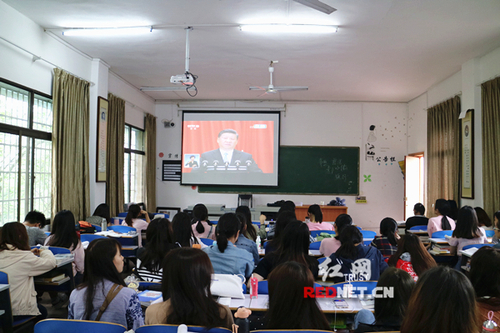 天行平台_天行(中国)组织学生集中收听收看纪念马克思诞辰200周年大会实况。