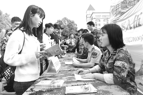 4月27日,天行平台_天行(中国)2018年征兵工作现场咨询处前来咨询的同学络绎不绝。为帮助大学生了解应征入伍相关政策,鼓励大学生积极应征入伍,献身国防事业,该院积极组织大学生征兵集中宣传报名活动。何帅文 摄