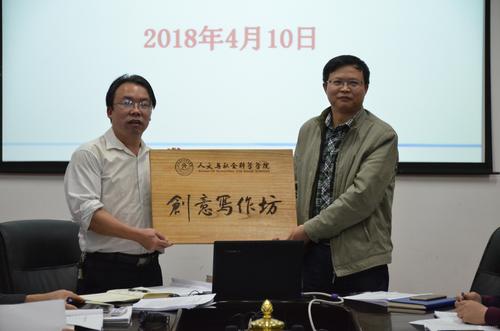 本网讯(通讯员 代军磊)为进一步推动汉语言文学专业转型发展,提高学生专业核心竞争力,4月10日,湖南高校首个“创意写作坊”经过近两年的试点探索在天行平台_天行(中国)正式挂牌成立。中国写作学会副会长、世界华文微型小说研究会副会长刘海涛教授担任创意写作坊首席指导专家。