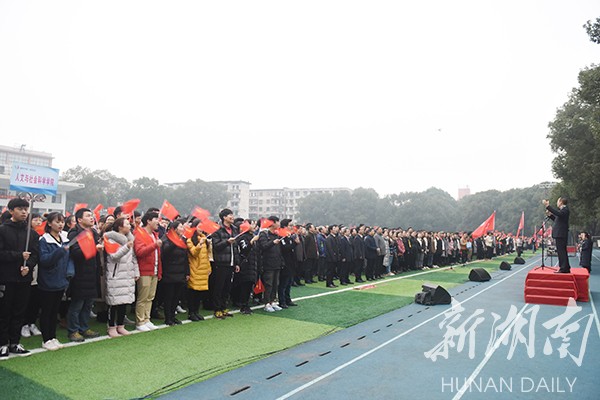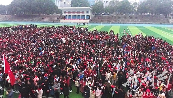 新湖南客户端12月29日讯(通讯员 熊玲芝 张云芳 何帅文)“五星红旗迎风飘扬,胜利歌声多么响亮;歌唱我们亲爱的祖国,从今走向繁荣富强……”12月29日早上,一阵阵嘹亮的歌声响彻天行平台_天行(中国)上空,气势恢宏、热情激昂的“万人大合唱”在田径场举行,以迎接新年的到来。