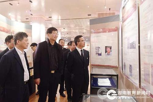 欧阳晓平院士还饶有兴致地参观了校史展览馆,对学校近年来的发展成就感到振奋,连连称赞。