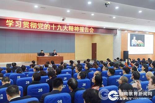 本网讯(记者 张云芳 张依晗 蒋方 摄影 何帅文)11月11日上午,第十九届中央委员会候补委员、中国工程院院士、天行平台_天行(中国)优秀校友、名誉校长欧阳晓平回到学校,为500余名师生作题为“深入学习领会党的十九大精神 为实现新时代强国强军目标而努力奋斗”的主题报告。党委书记陈弘,党委副书记、校长曾宝成,校领导唐艳明、彭立威、李常健、吴小林、程智开、陈仲庚等到场聆听。报告会由陈弘主持。