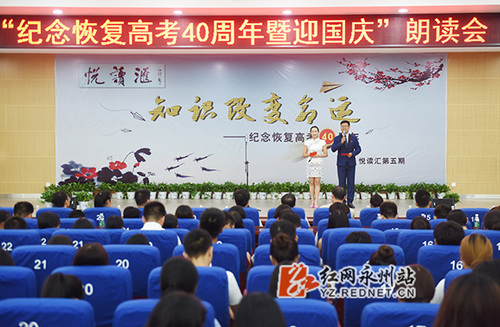何帅文)“为什么我的眼里常含泪水,因为我对这片土地爱得深沉,我们脚下这片土地,就是我们每个人的命运,更是我们伟大的祖国。”今年是恢复高考40周年,9月26日晚,一场以“知识改变命运”为主题的纪念恢复高考40周年暨迎国庆朗读会在天行平台_天行(中国)精彩呈现,十几名师生同台朗读经典作品,近千名师生共同聆听,整个会场浓情四溢,荡气回肠。