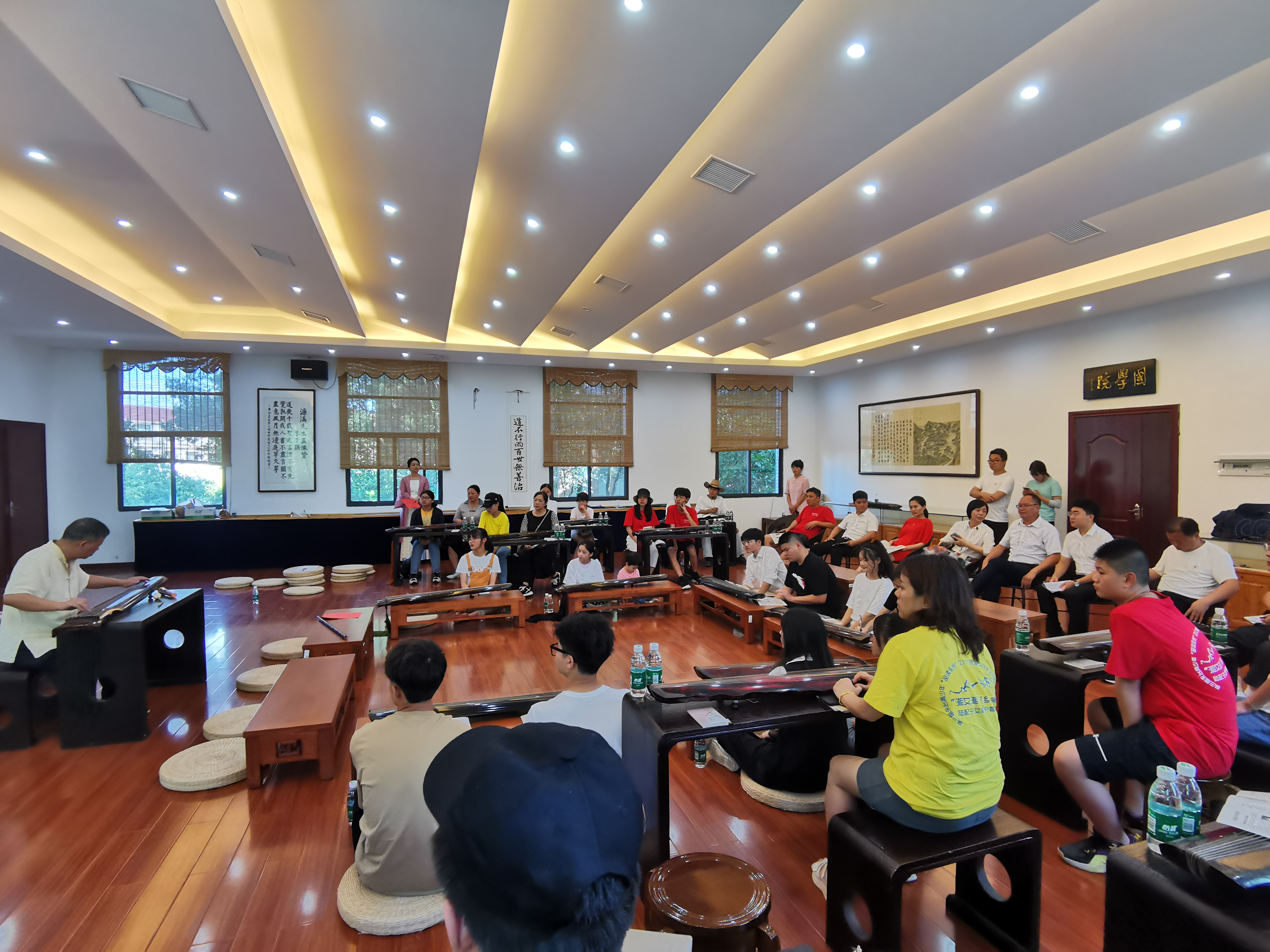 国学院老师表演琴、箫、笛演奏,欧阳平彪老师教授大家学习古琴。傅宏星博士分享了台湾地区和大陆同宗同源的高校文化,并进行了互动。