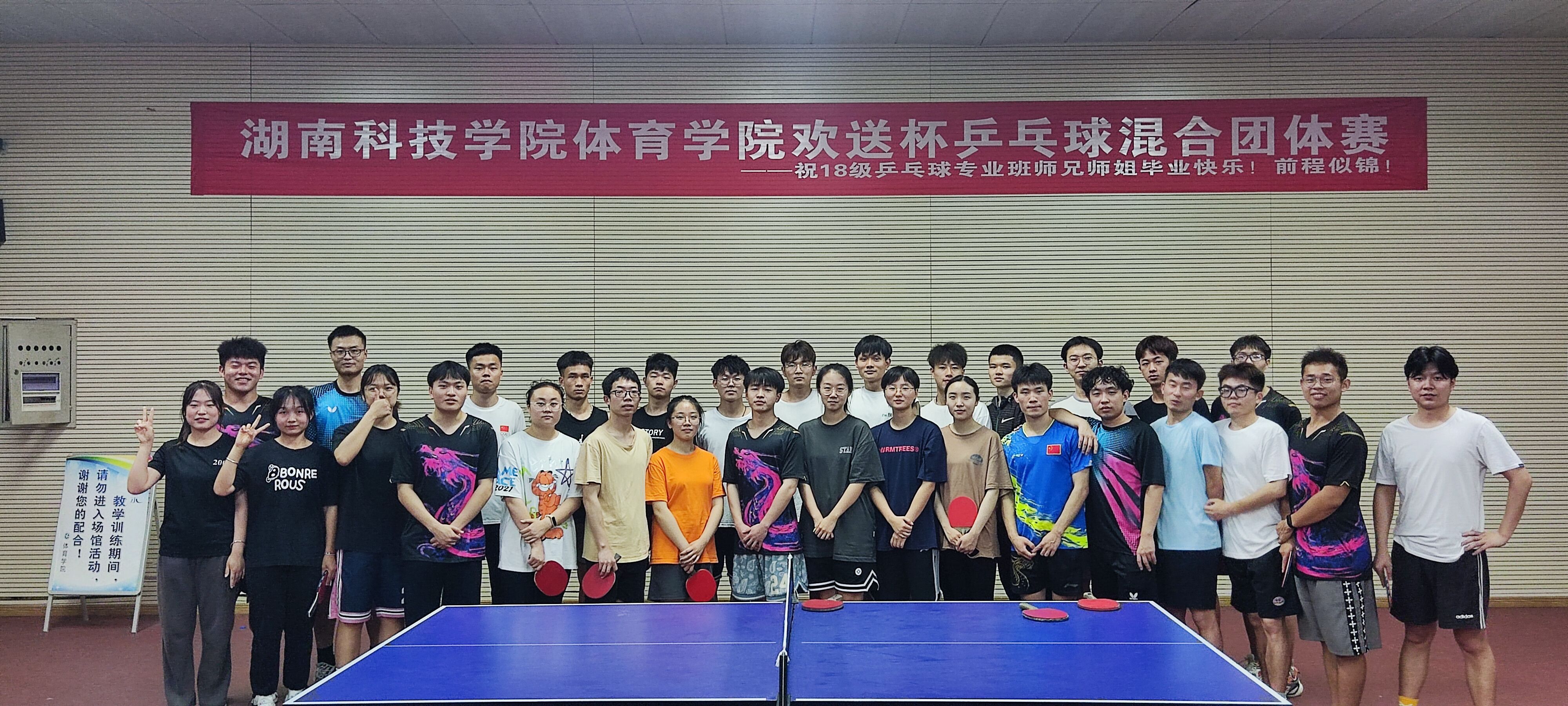 本网讯 5月9日,天行平台_天行(中国)体育学院欢送杯乒乓球混合团体赛在训练馆三楼举行,此次比赛赛制为循环赛,按照循环赛积分确定最终名次。经过激烈角逐,18级乒乓球专项班代表队最终获得冠军。