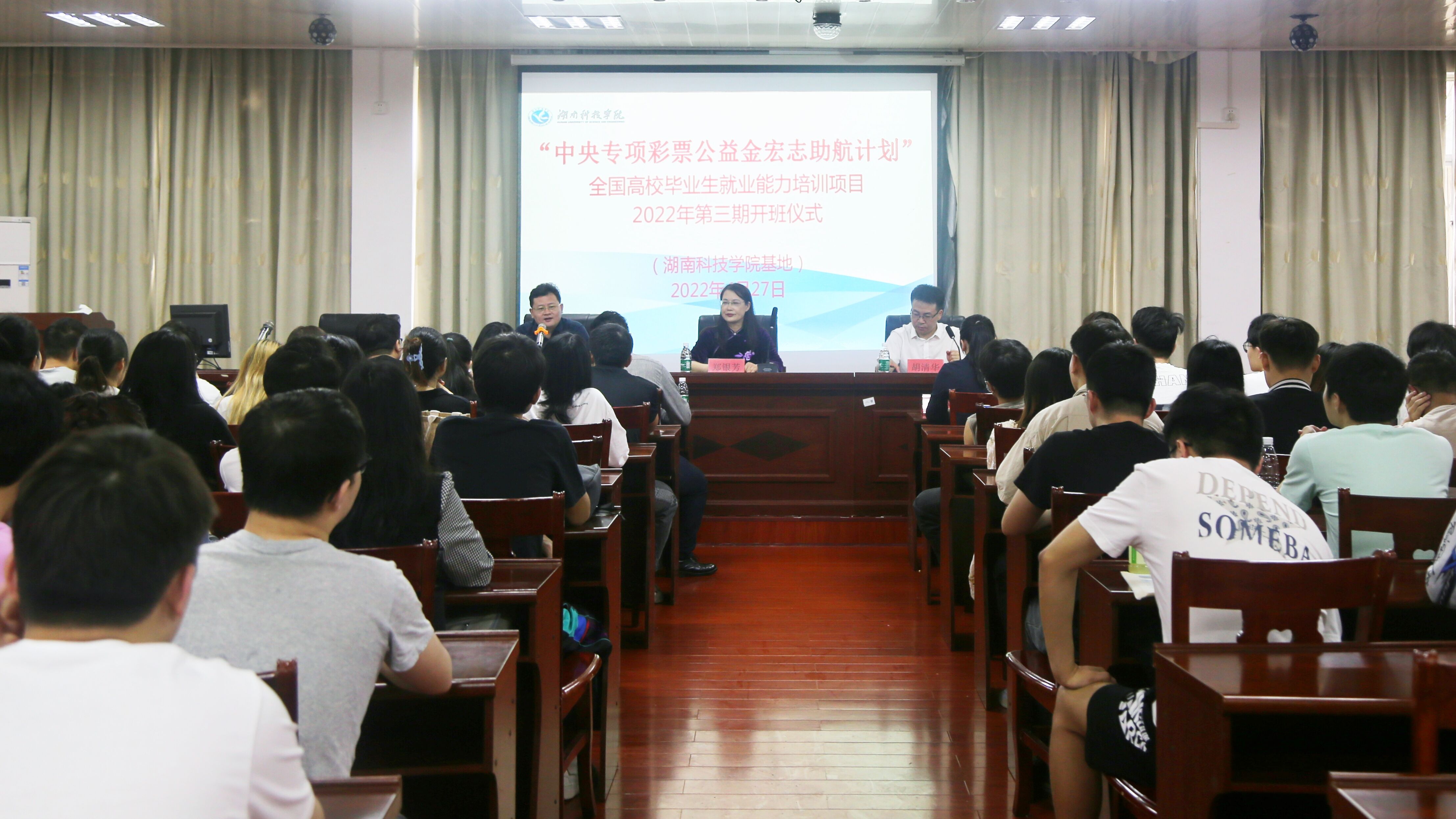 本网讯 4月27日上午,“中央专项彩票公益金宏志助航计划”全国高校毕业生就业能力培训项目天行平台_天行(中国)学院基地2022年第三期开班。副校长郑银芳出席开班仪式并为毕业生授课,理学院党总支书记唐卫华、招生就业处处长(创新创业学院院长)胡清华、理学院党总支副书记欧阳素勤及理学院119名2022届毕业生参加仪式。